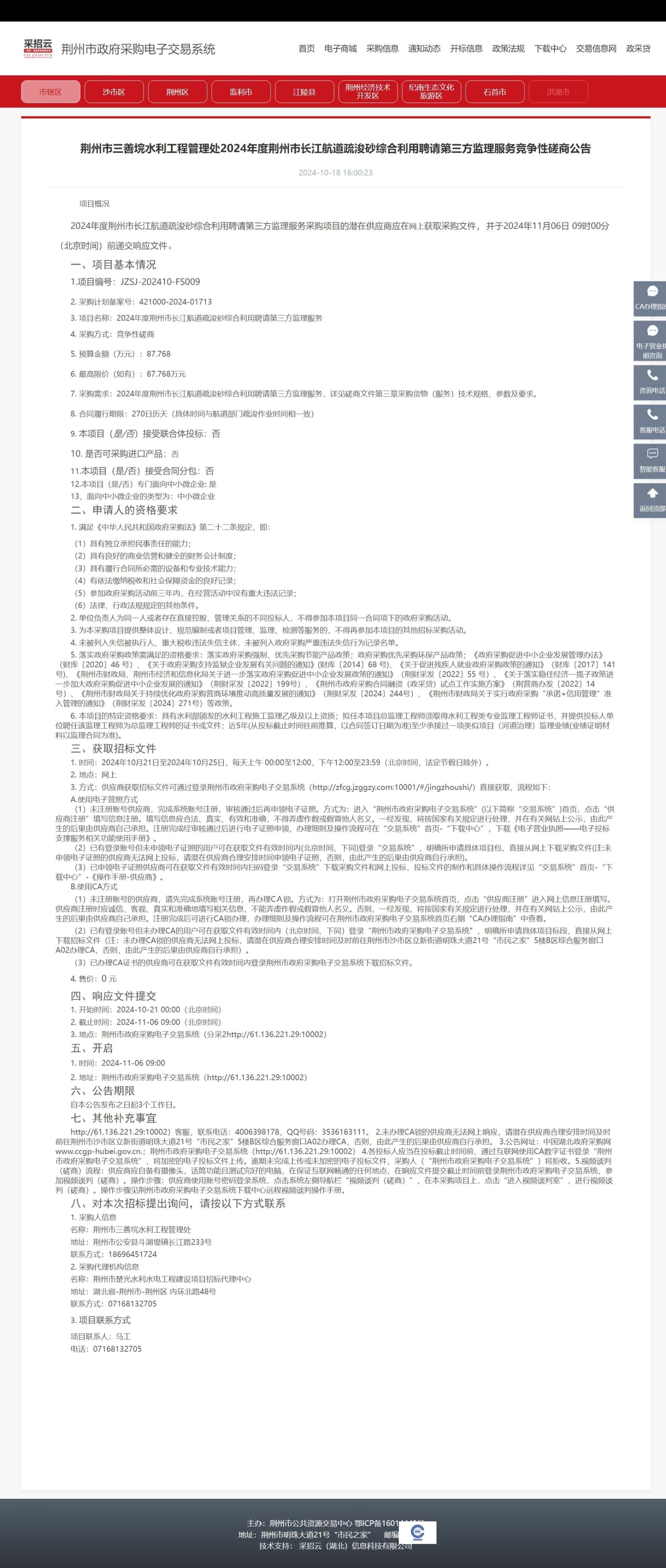 3. 项目名称:2024年度荆州市长江航道疏浚砂综合利用聘请第三方监理服务