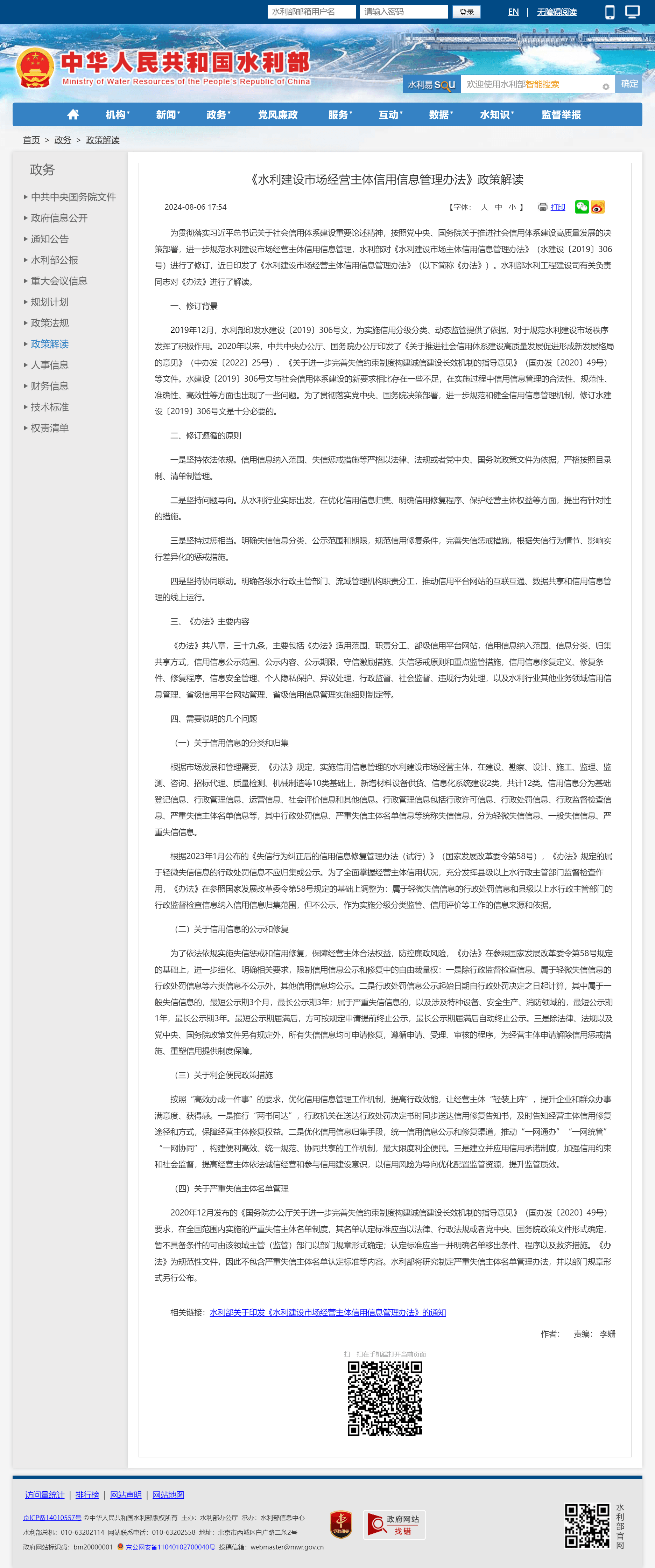 为贯彻落实习近平总书记关于社会信用体系建设重要论述精神,按照党中央、国务院关于推进社会信用体系建设高质量发展的决策部署,进一步规范水利建设市场经营主体信用信息管理,水利部对《水利建设市场主体信用信息管理办法》(水建设〔2019〕306号)进行了修订,近日印发了《水利建设市场经营主体信用信息管理办法》(以下简称《办法》)。水利部水利工程建设司有关负责同志对《办法》进行了解读。