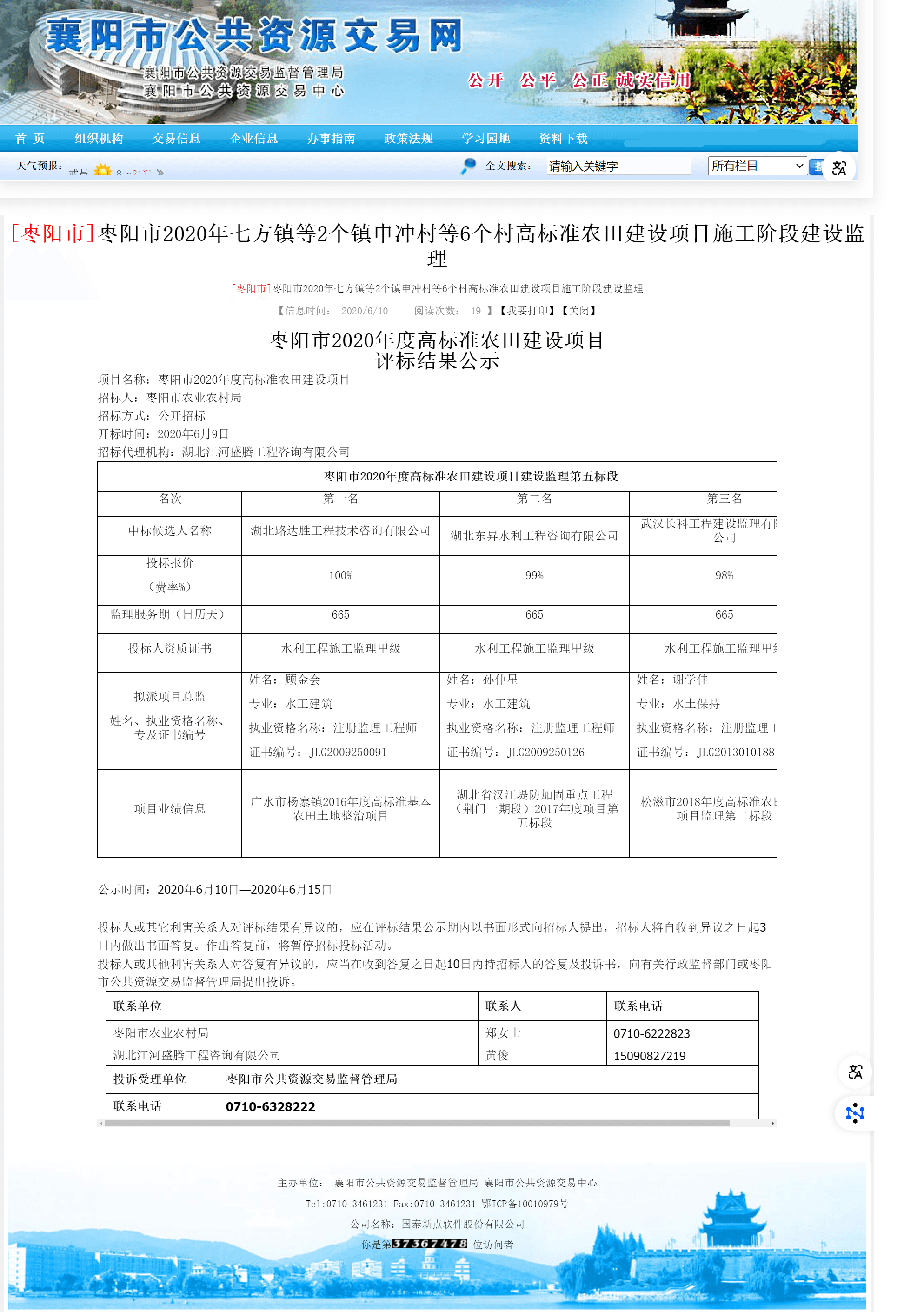 枣阳市2020年度高标准农田建设项目建设监理第五标段 |