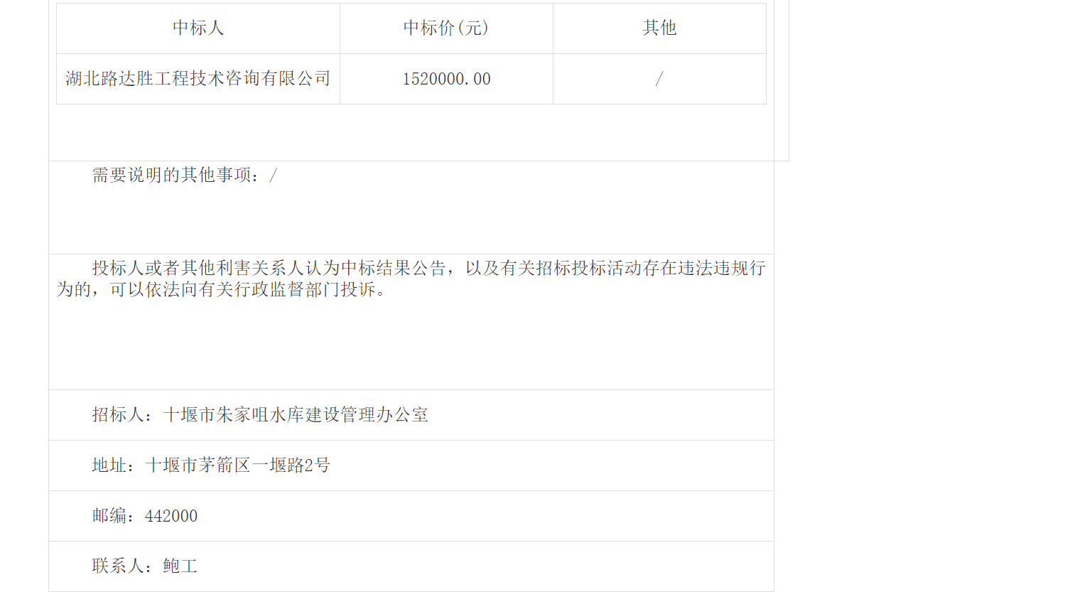 | 招标人:十堰市朱家咀水库建设管理办公室 | |||||||