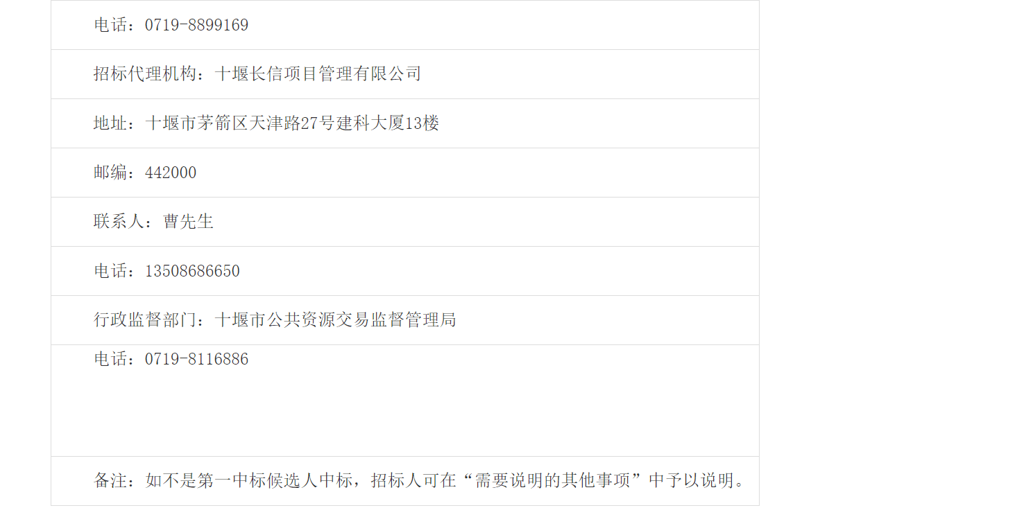 | 行政监督部门:十堰市公共资源交易监督管理局 | |||||||