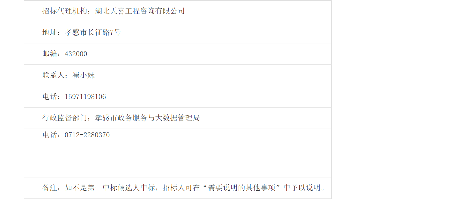 | 招标代理机构:湖北天喜工程咨询有限公司 | |||||||
