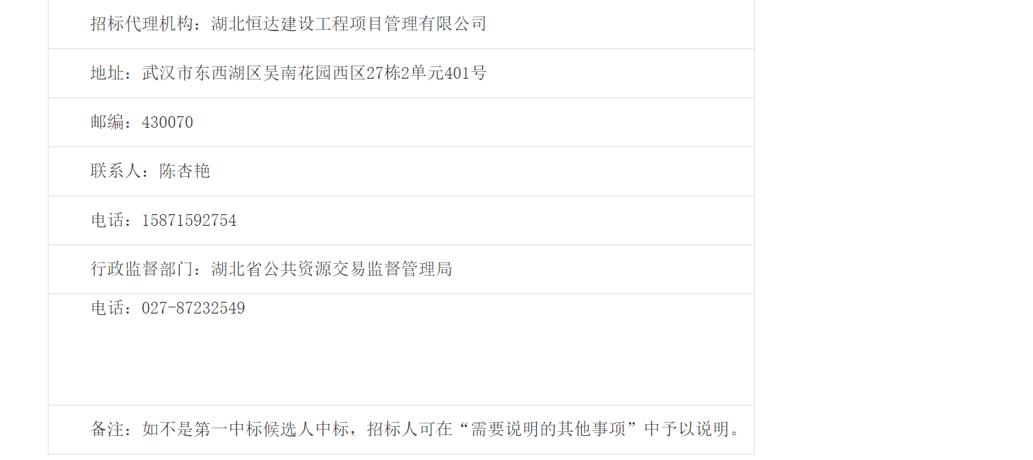 | 招标代理机构:湖北恒达建设工程项目管理有限公司 | |||||||