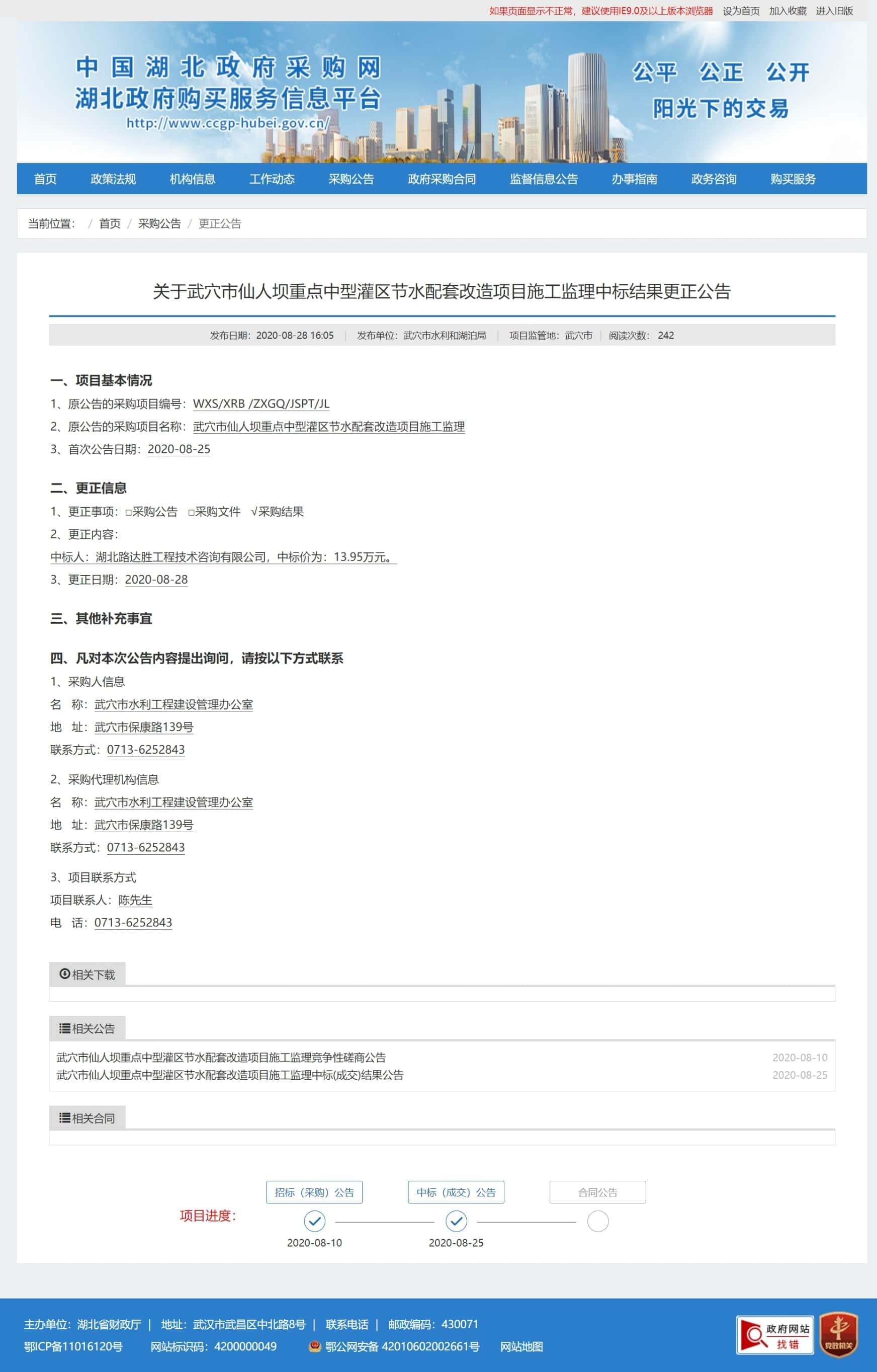 中标人:湖北路达胜工程技术咨询有限公司,中标价为:13.95万元。