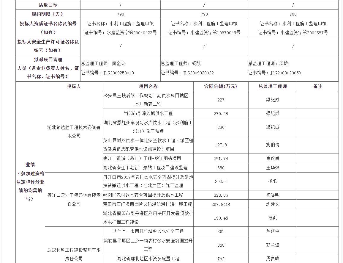 第二中标候选人:丹江口汉江工程咨询有限责任公司