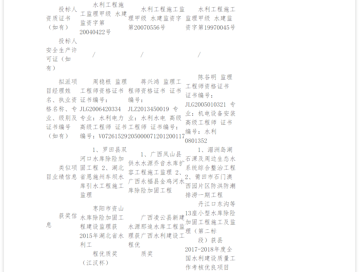 1、罗田县双河口水库除险加固工程 2、湖北省恩施州车坝水库引水工程施工监理 |