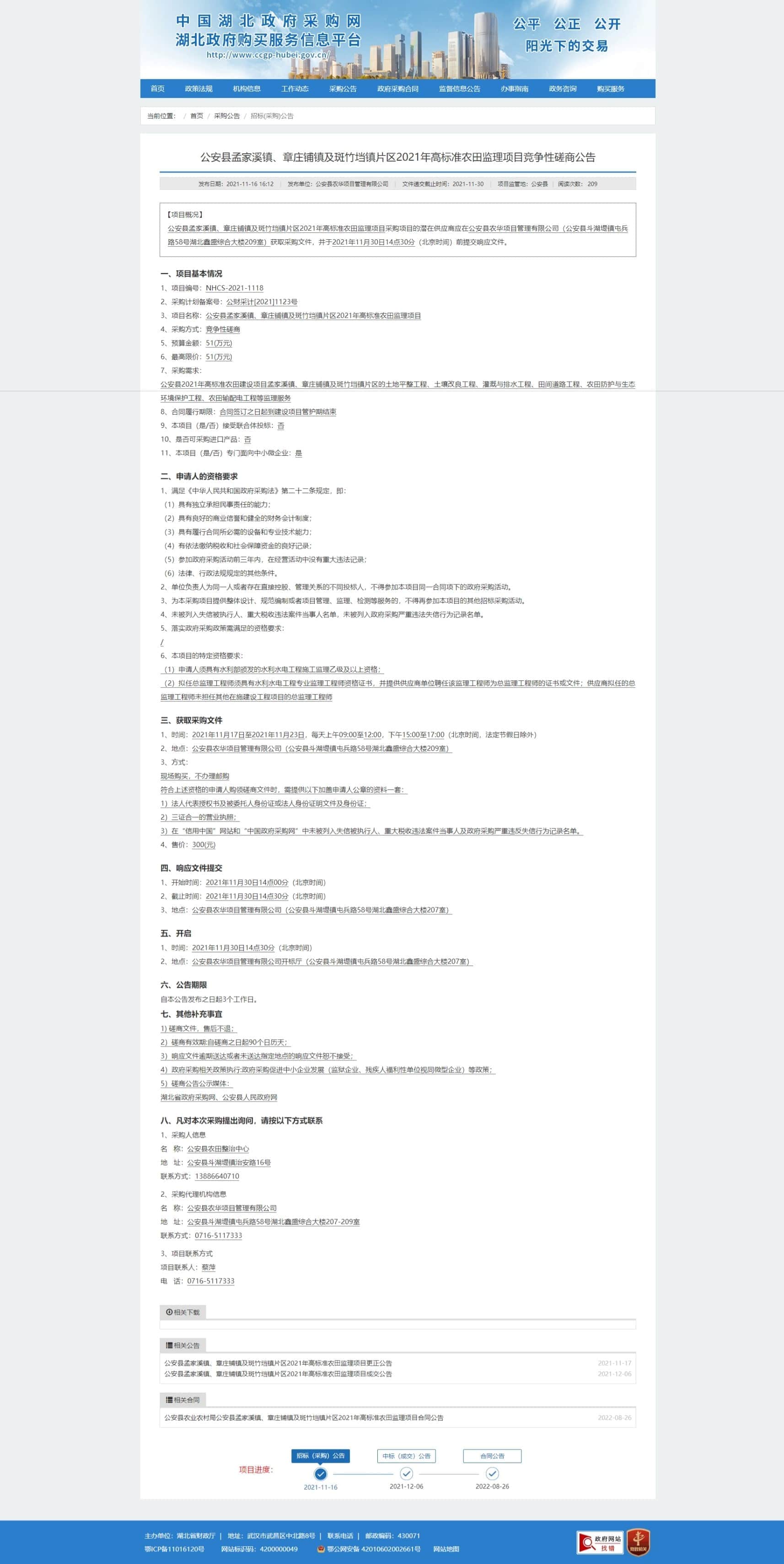 发布日期:2021-11-16 16:12|发布单位:公安县农华项目管理有限公司|文件递交截止时间:2021-11-30|项目监管地:公安县|阅读次数: 210