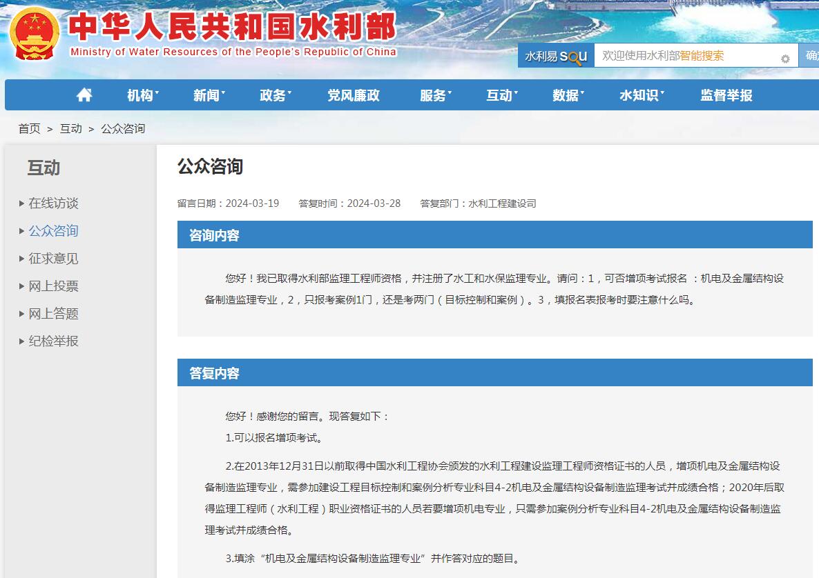 留言日期:2024-03-19 答复时间:2024-03-28 答复部门:水利工程建设司