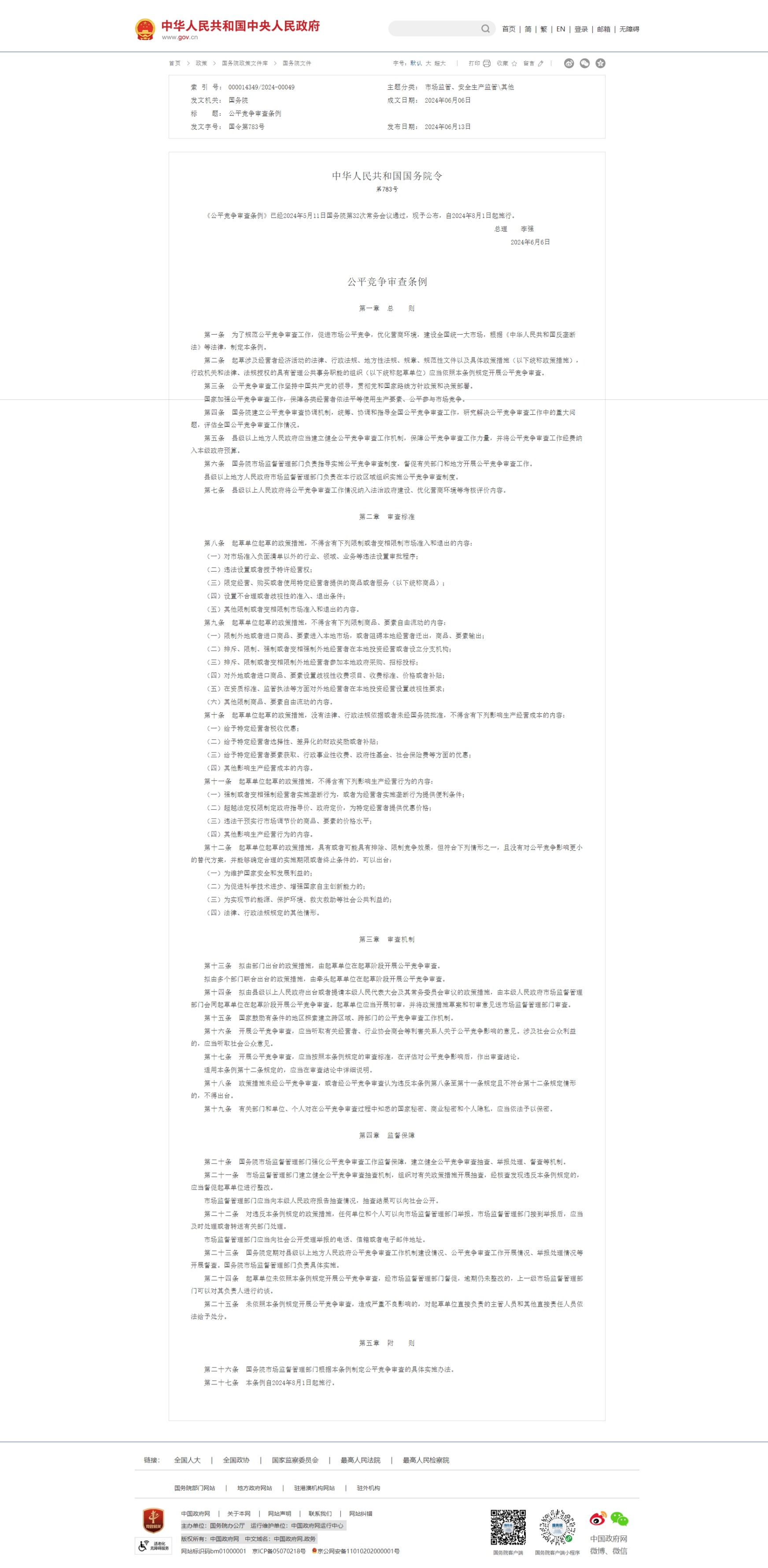 发文字号: 国令第783号 发布日期: 2024年06月13日