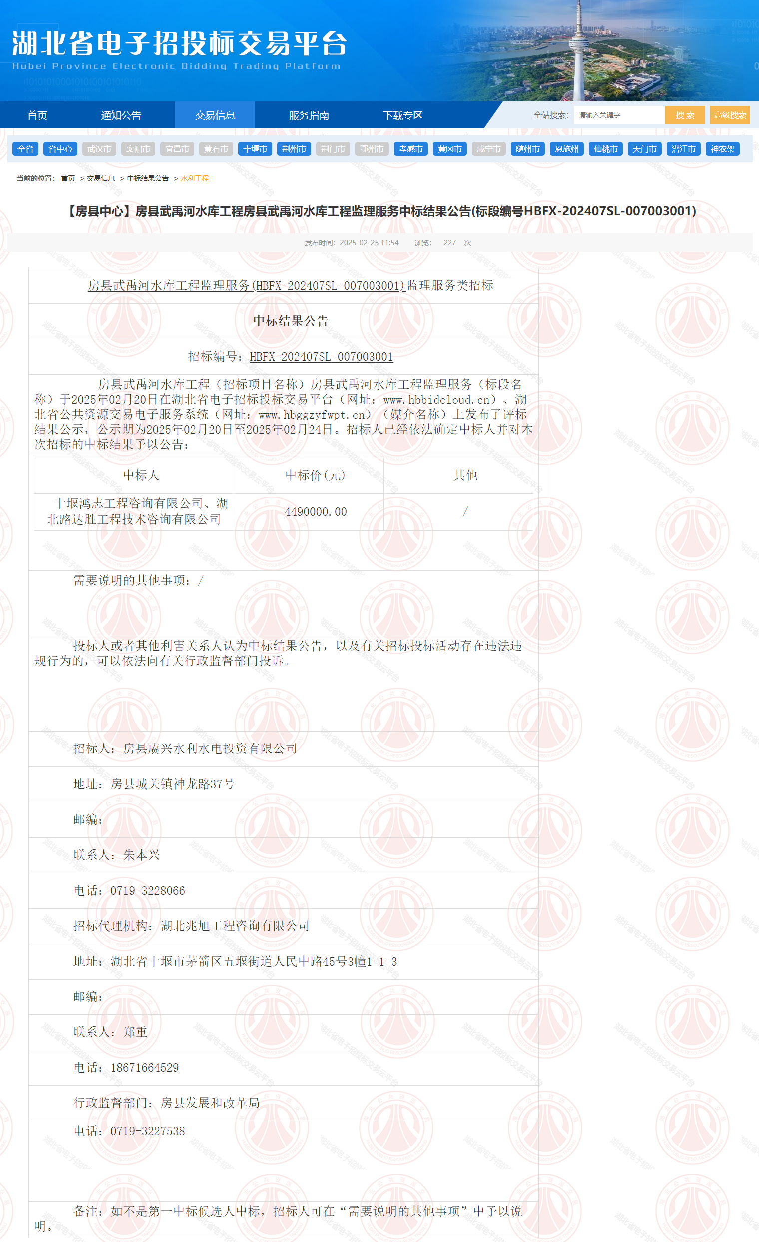 | 十堰鸿志工程咨询有限公司、湖北路达胜工程技术咨询有限公司 | 4490000.00 | / |