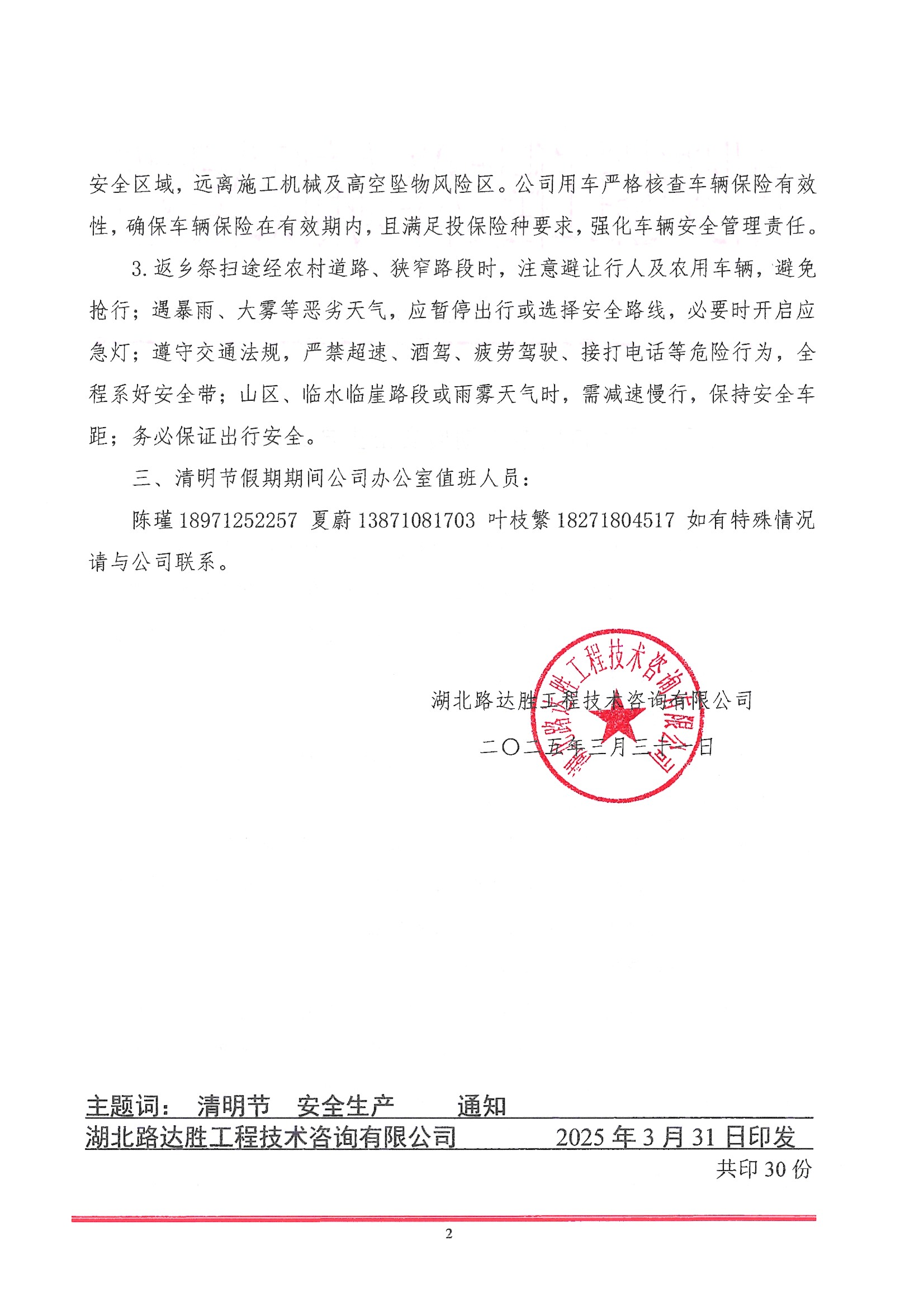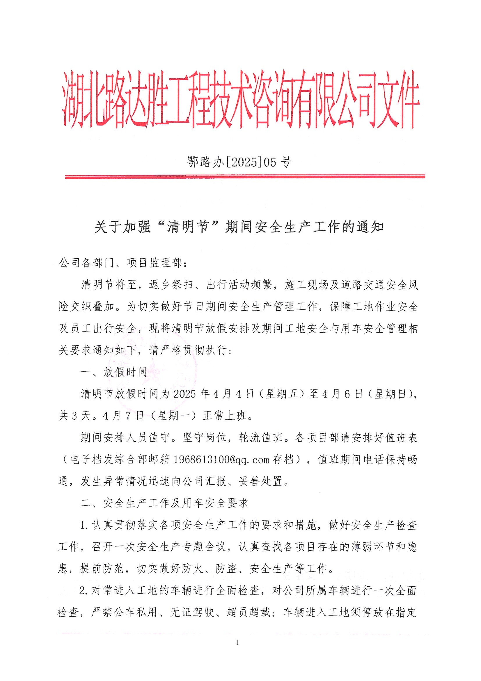 关于加强“清明节”期间安全生产工作的通知