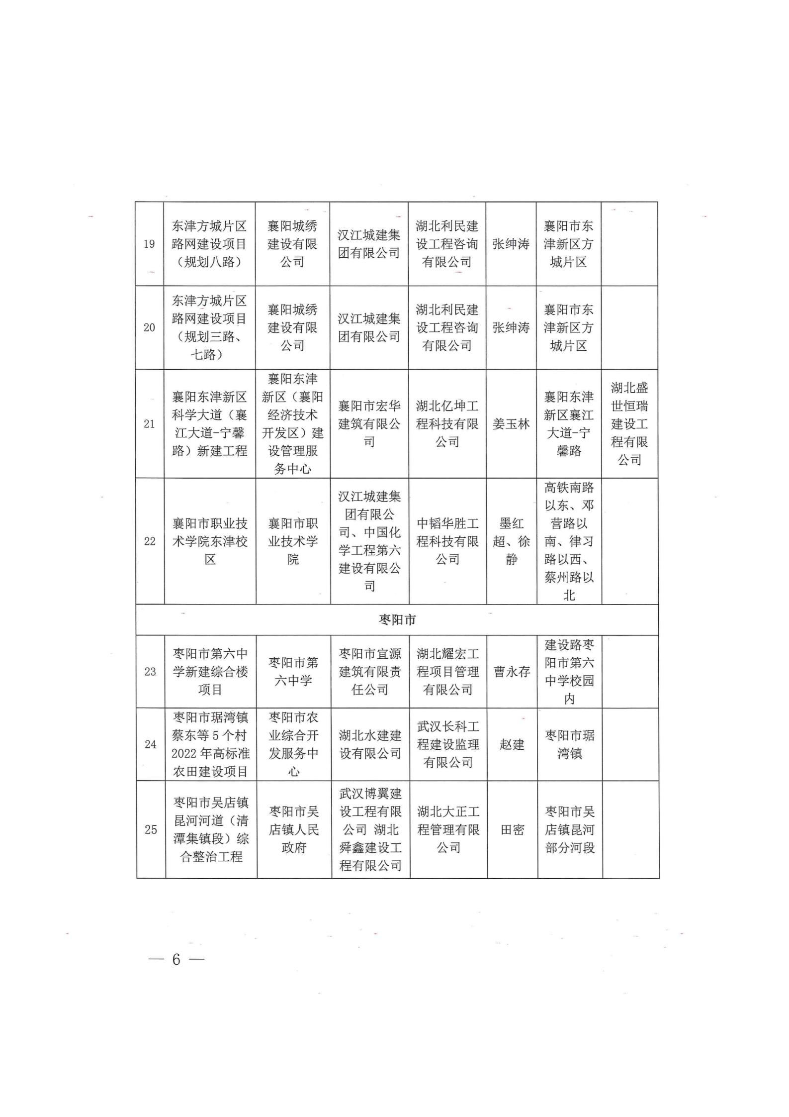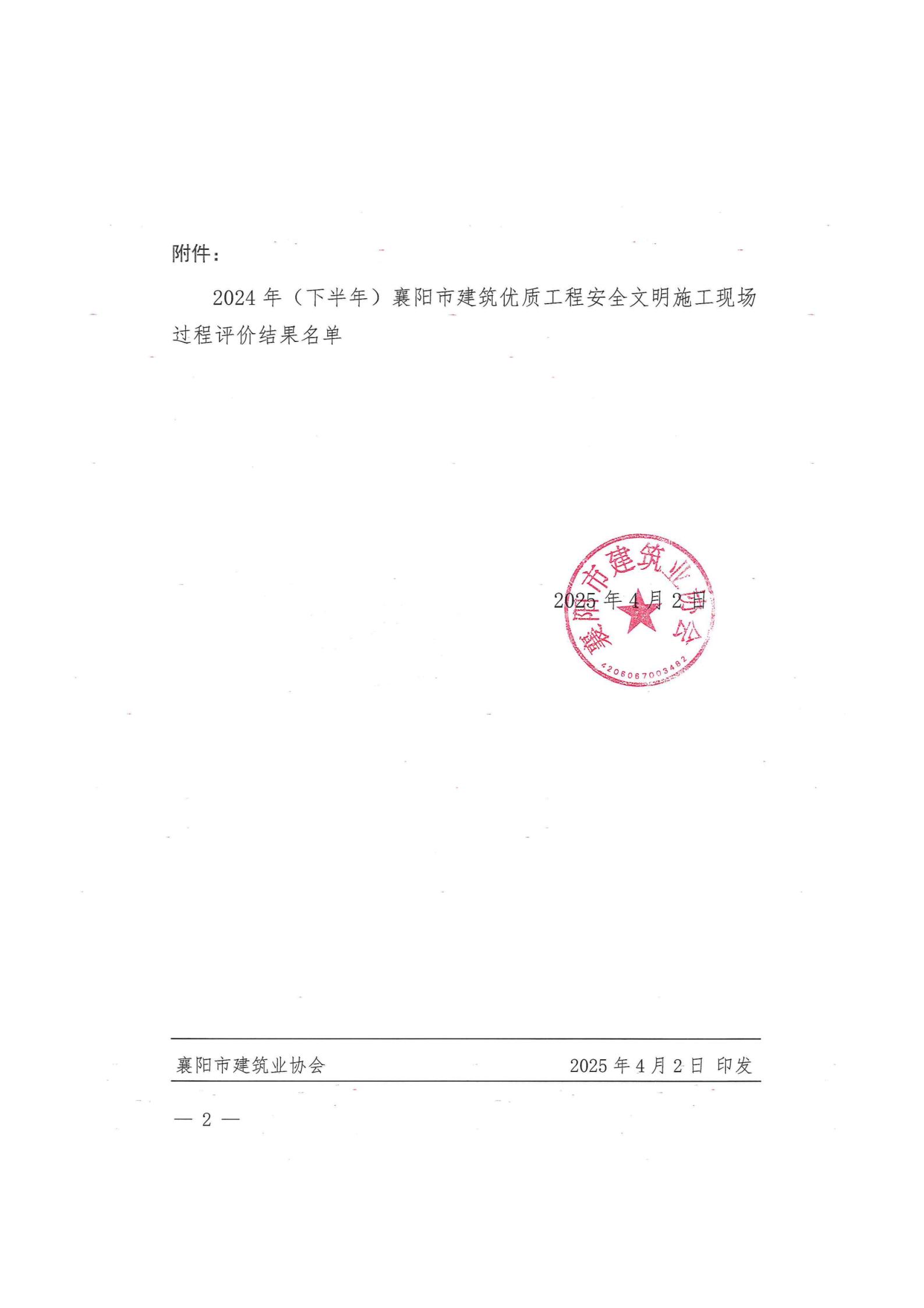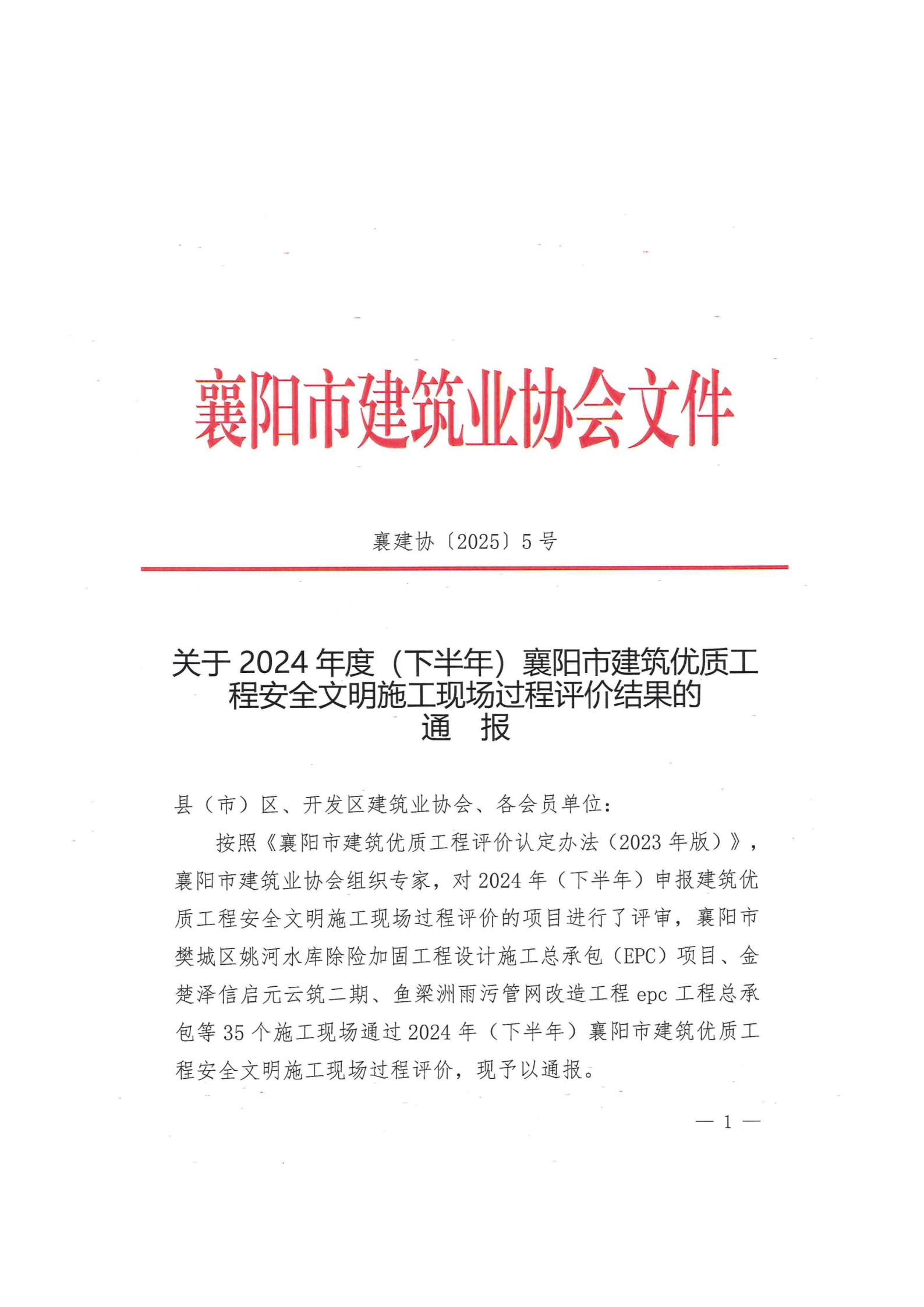 关于2025年度(上半年)襄阳市建筑优质工程安全文明施工现场过程评价结果的通报
