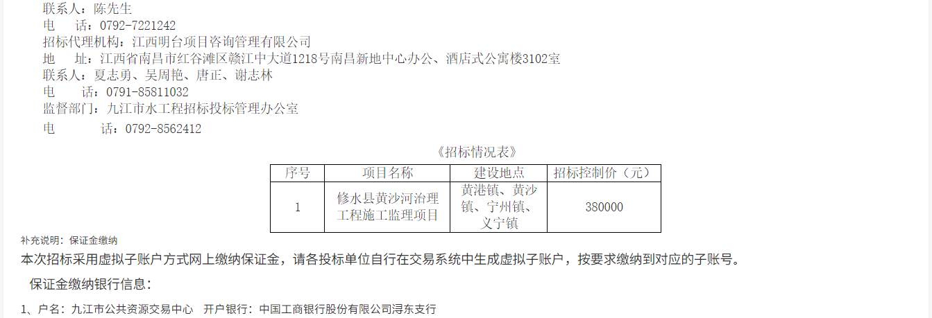 7.4 本项目招标全过程由九江市水工程招标投标管理标办公室进行监督。