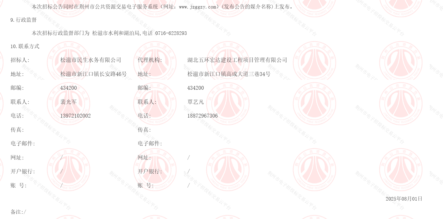 松滋市城乡供水保障一体化项目-西部调水工程(白龙埂水厂至李桥加压站)监理(JZSZ-202507SL-005003001)招标公告