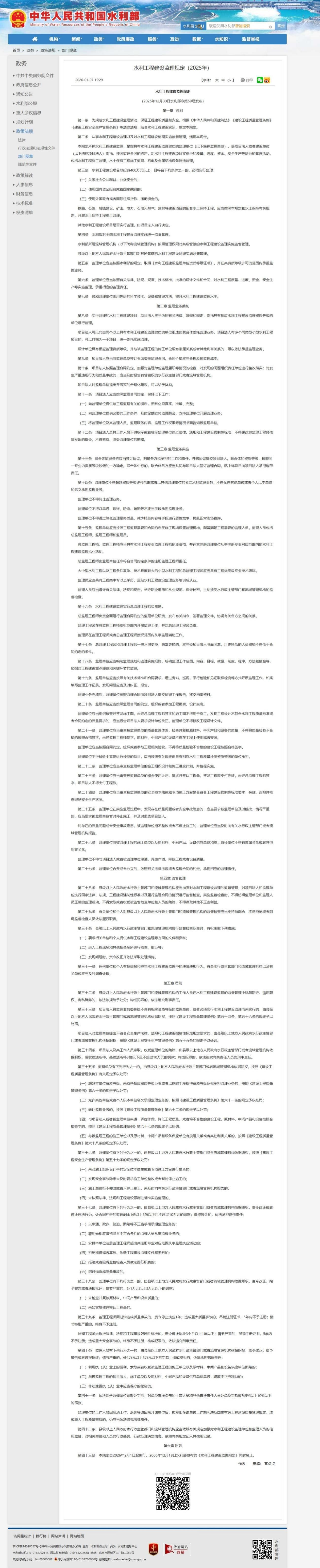 水利工程建设监理规定(2025年)