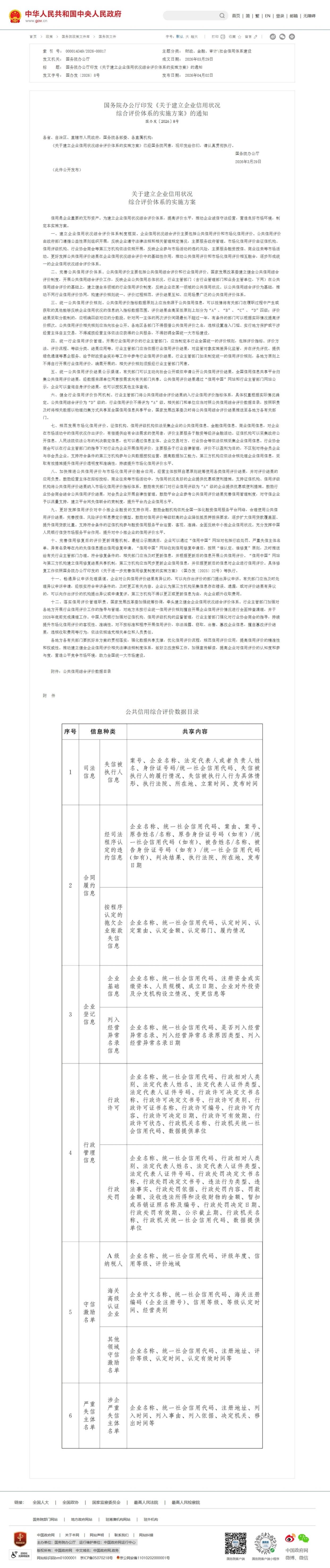 国务院办公厅印发《关于建立企业信用状况