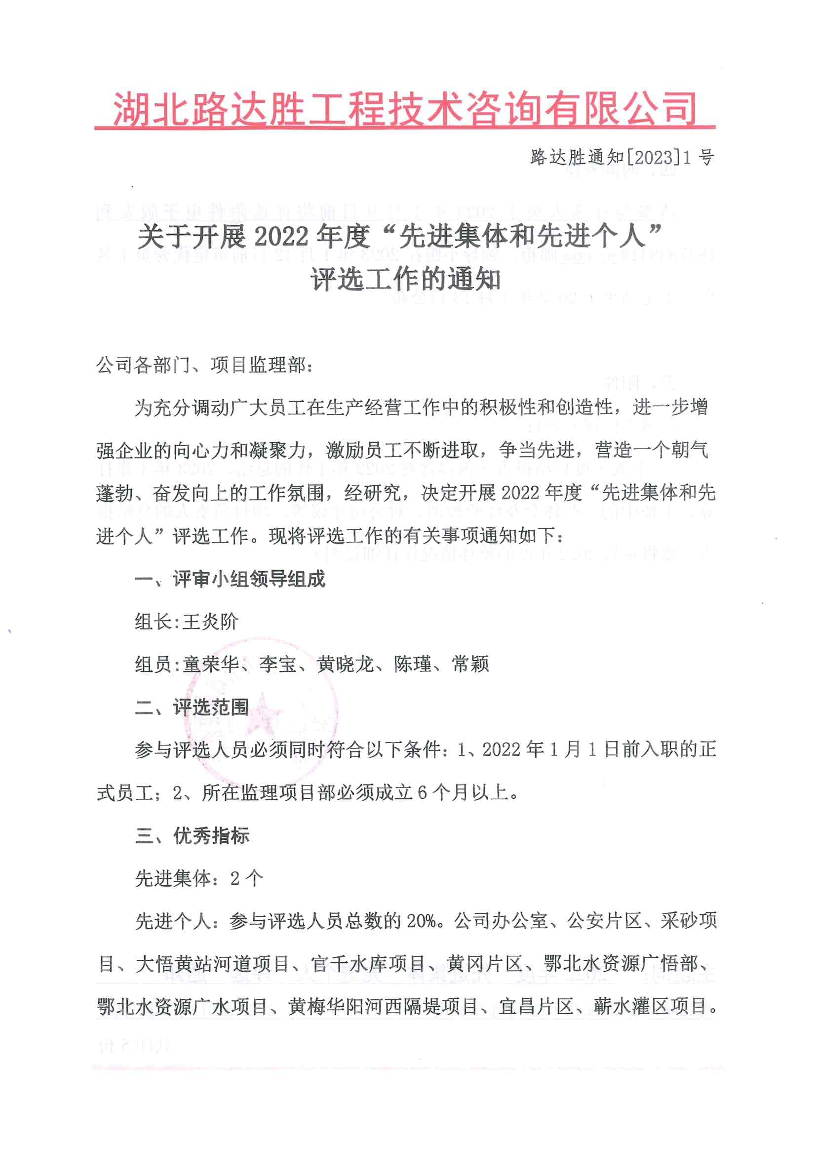 关于开展2022年度“先进集体和先进个人”评选工作的通知