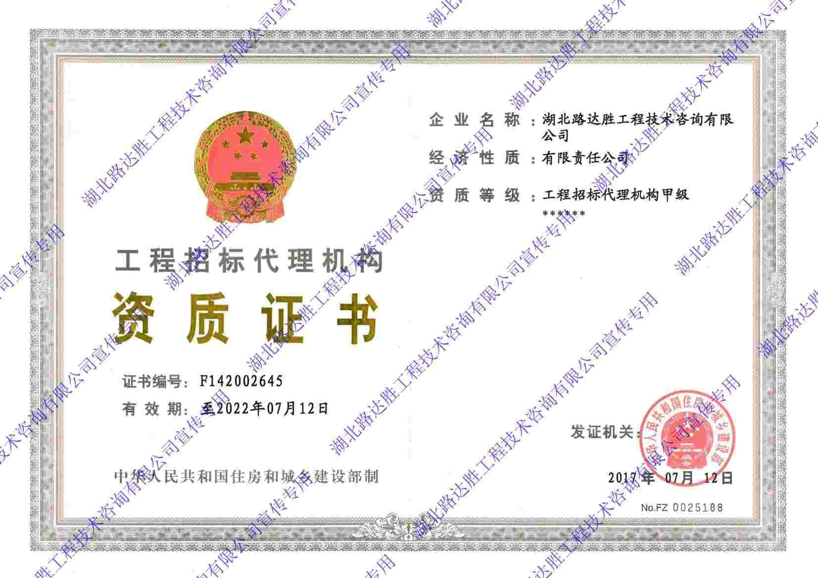 招标代理资质证书
