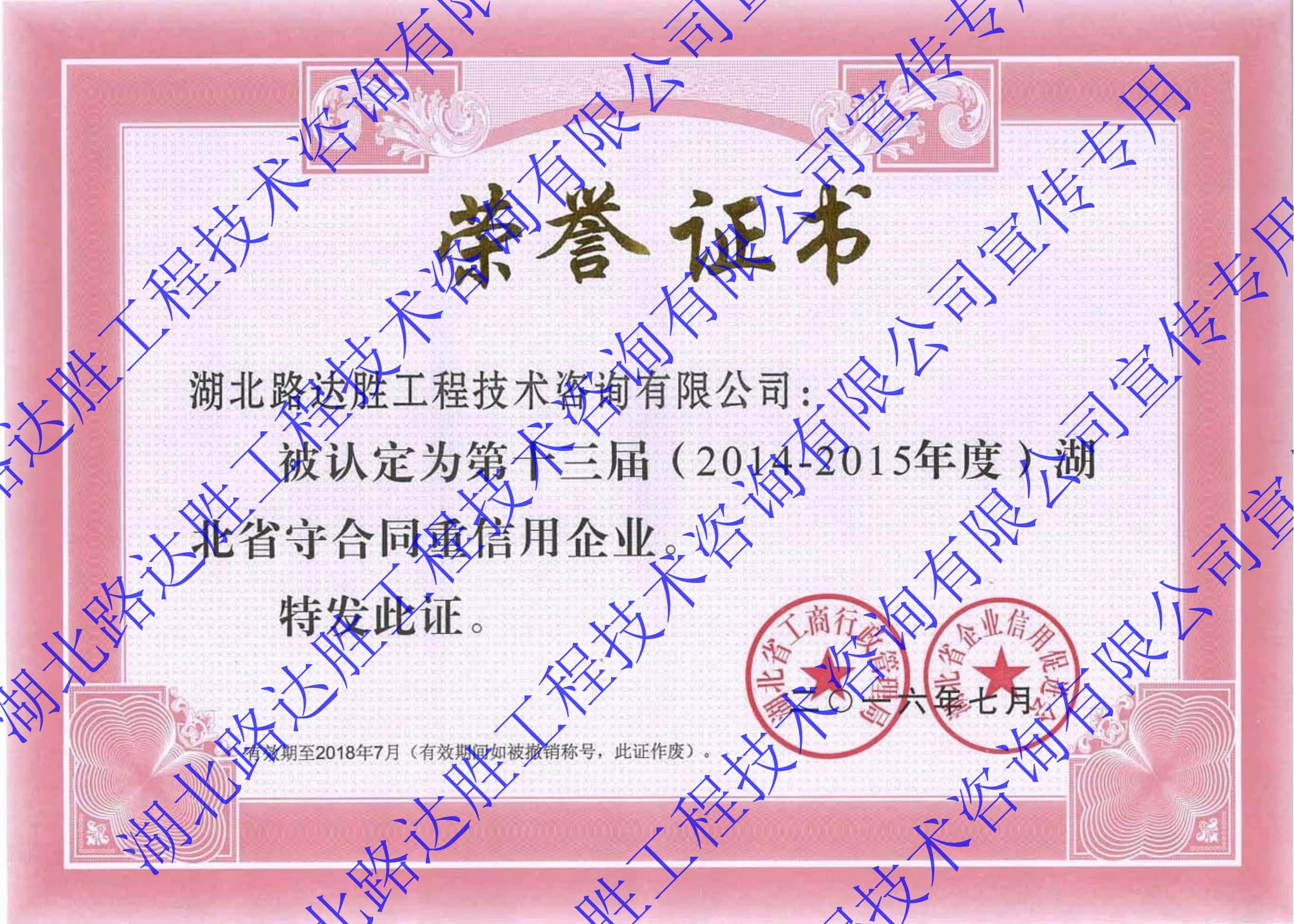 第十三届(2014-2015年度)湖北省守合同重信用企业