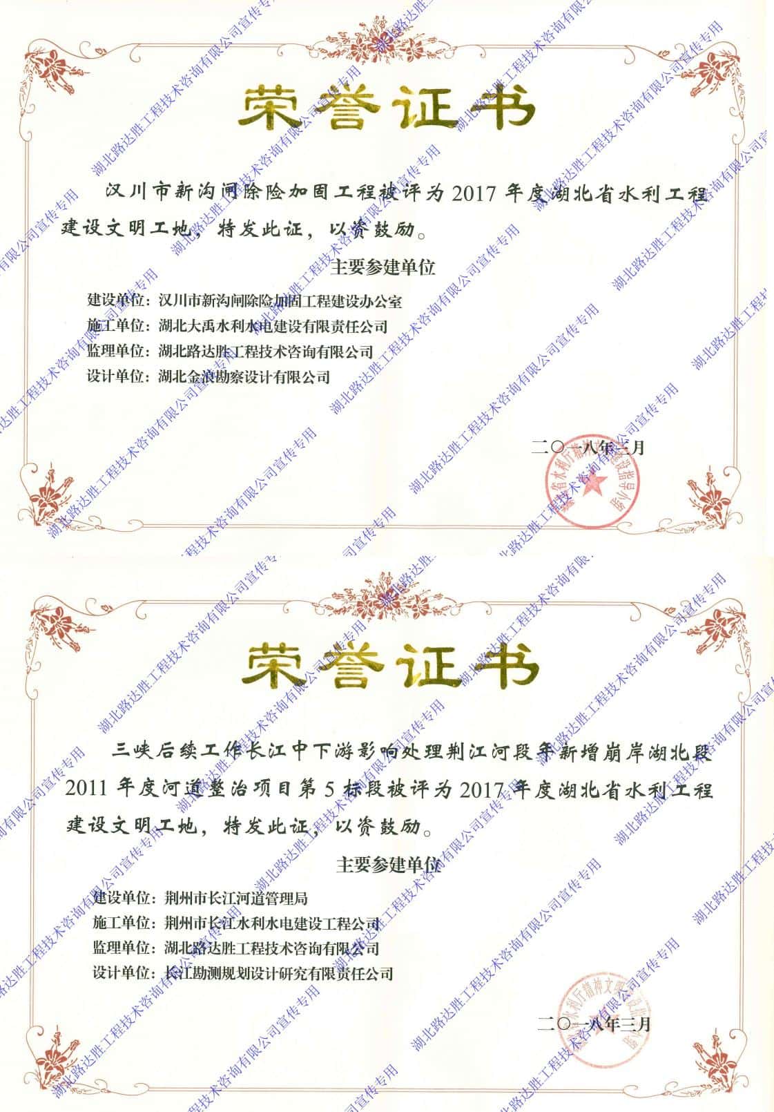 2017年度湖北省水利工程建设文明工地