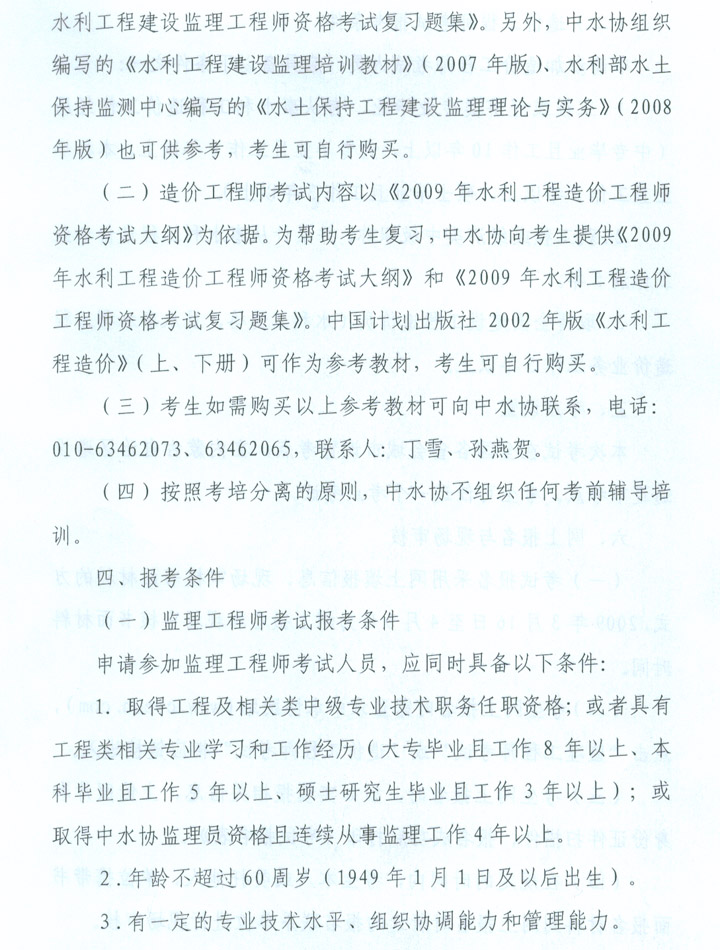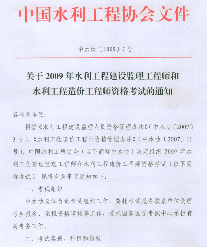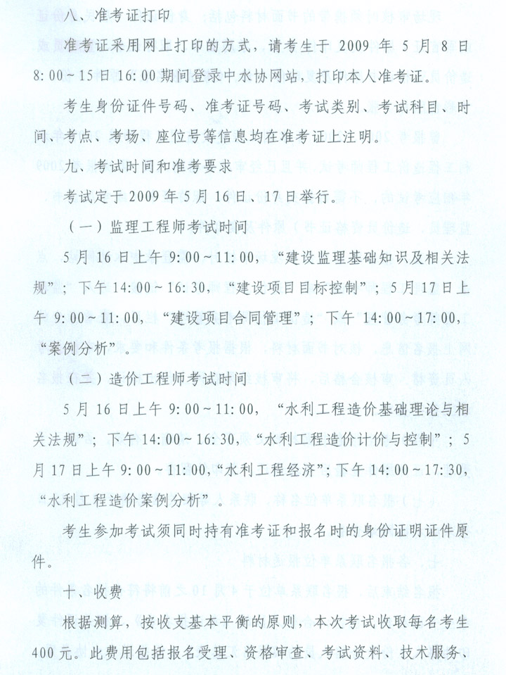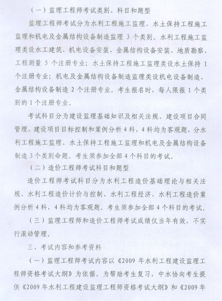 关于2009年水利工程建设监理工程师和水利工程造价工程师资格考试的通知