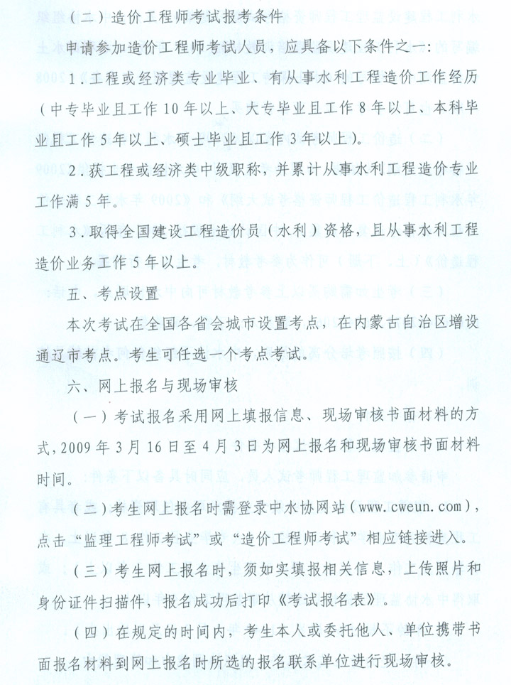 关于印发《2009年水利工程造价工程师资格考试大纲》的通知